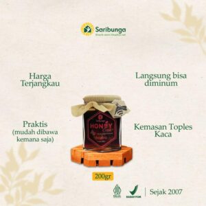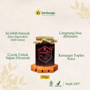 ✔️Terjamin Kehalalannya Dan Mendapatkan SERTIFIKAT HALAL Dari MUI.Tersebar dari berbagai petani dilahan yang kaya akan berbagai macam nektar bunga. Dipanen secara berkala menjadikan madu yang dihasilkan Saribunga selalu fresh saat sampai ke tangan pembeli.