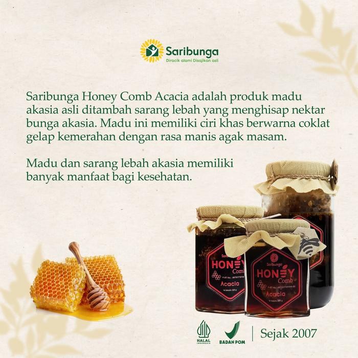 Madu Sarang Akasia yang dihasilkan dari lebah Apis melifera yang menghisap nektar bunga akasia pulau sumatra. Madu ini di panen langsung di hutan Akasia dengan kualitas madu yang baik tanpa campuran apapun sehingga benar-benar murni. Sangat cocok di konsumsi sebagai peningkat stamina, untuk kesehatan dan multivitamin.
