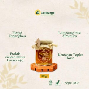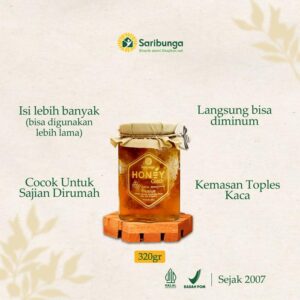 ✔️Terjamin Kehalalannya Dan Mendapatkan SERTIFIKAT HALAL Dari MUI.Tersebar dari berbagai petani dilahan yang kaya akan berbagai macam nektar bunga. Dipanen secara berkala menjadikan madu yang dihasilkan Saribunga selalu fresh saat sampai ke tangan pembeli.