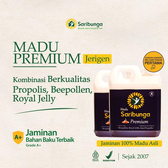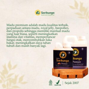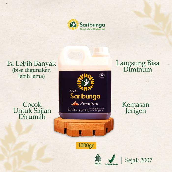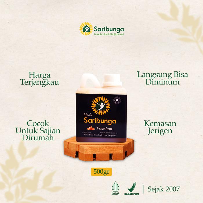 ️Terjamin Kehalalannya Dan Mendapatkan SERTIFIKAT HALAL Dari MUI.Tersebar dari berbagai petani dilahan yang kaya akan berbagai macam nektar bunga. Dipanen secara berkala menjadikan madu yang dihasilkan Saribunga selalu fresh saat sampai ke tangan pembeli.