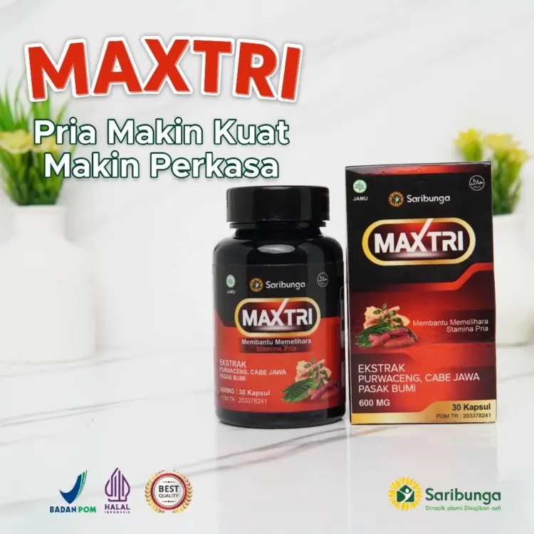 Jika Anda mencari suplemen herbal yang aman, halal, BPOM, tanpa efek samping, dan secara alami membantu meningkatkan stamina, vitalitas, energi, serta mendukung keharmonisan suami istri, maka MAXTRI Saribunga adalah pilihannya.