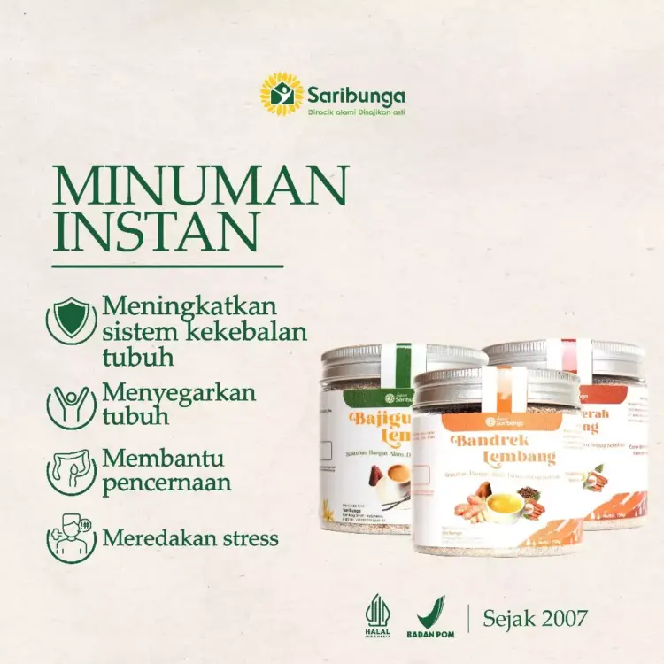 Cuaca dingin Lembang terkenal membuat tubuh membutuhkan minuman hangat yang beraroma rempah dan memberikan sensasi nyaman. Kini Anda bisa menikmati kehangatan khas Bandung Barat kapan saja, hanya dengan minuman instan premium dari Saribunga.